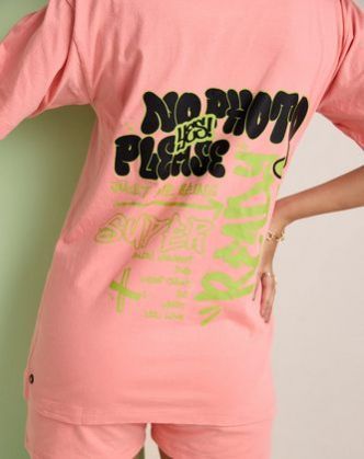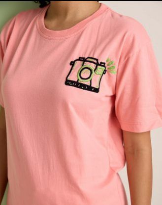An oversized women 's round neck t-shirt with embroidery in the front and a print at the back made of cotton is a stylish and comfortable choice. The oversized fit provides a relaxed and casual look, perfect for everyday wear. The embroidery in the front adds a touch of elegance and detail to the shirt, while the print at the back can be a fun and eye-catching design.
