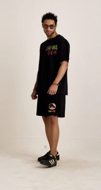 The co-ord set features an oversized round neck design that gives it a trendy and relaxed vibe. In f the front, there 's a cool print carried with a bold print at back. paired with A black shorts designed for men having a print in front. These shorts are not only stylish but also practical with pockets on both sides and center stitch lines. And the best part It 's made of soft and breathable cotton fabric, ensuring maximum comfort throughout the day.
